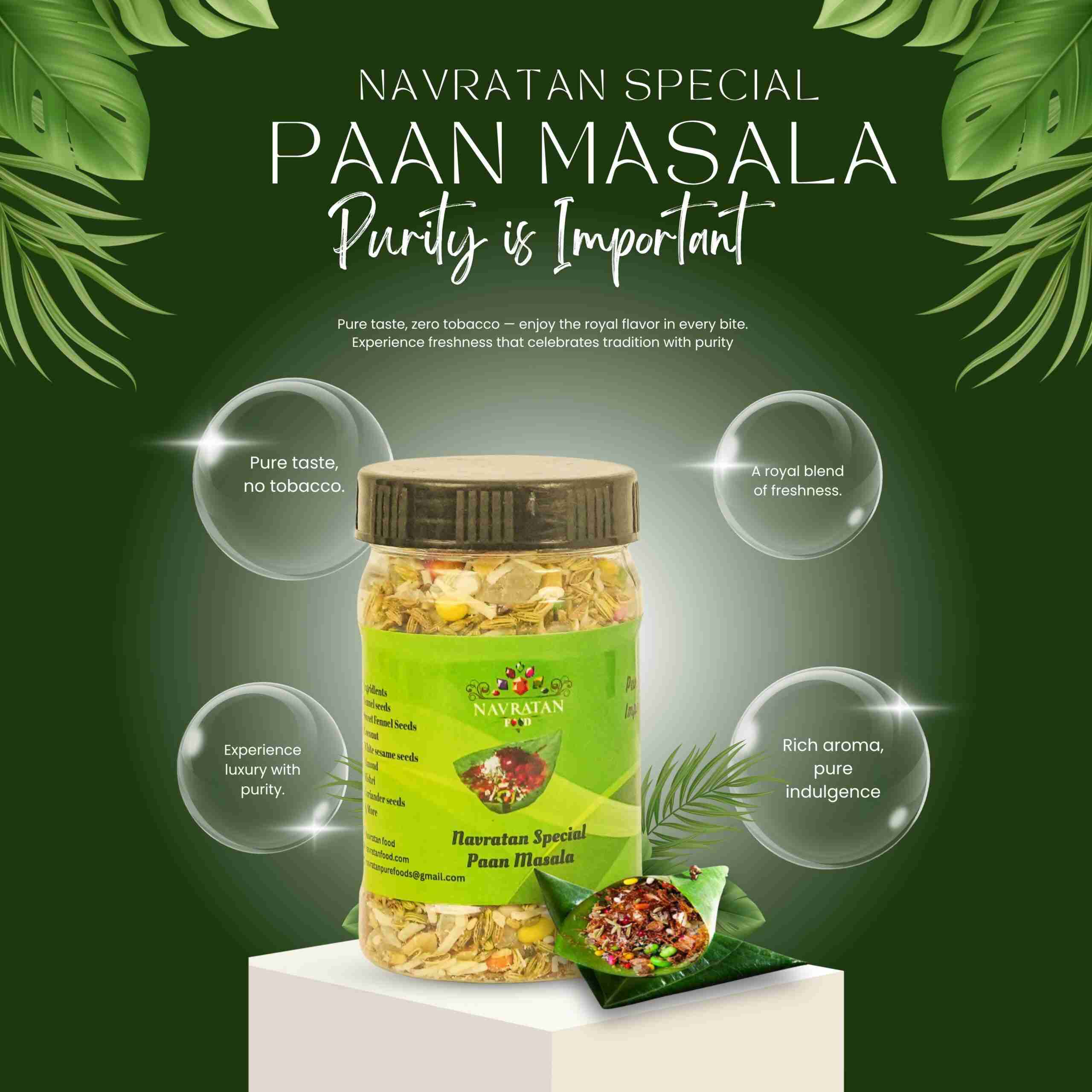 Treat your senses with Navratan Paan Masala! This 150-gram pack offers a refreshing blend of nuts and spices, perfect for a post-meal delight. Indulge today!